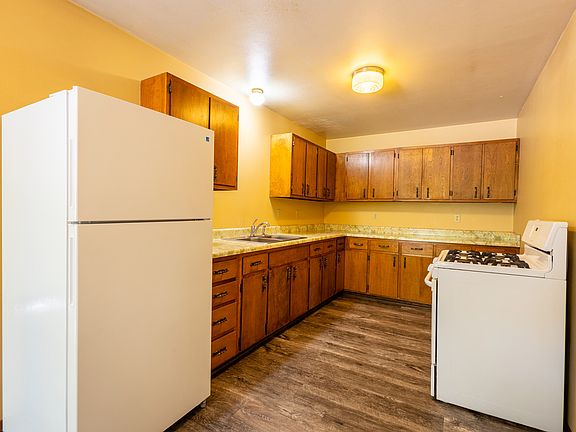 Upstairs two bedroom one bath unit with coin operated laundry in the building. ALL APPLICANTS MUST HAVE POSITIVE PRIOR RENTAL HISTORY, Credit score over 600, on time payments and complete a criminal background check. Application must be completed for every person over 18 years of age and one year lease required. Application can be found on our website at flatironpropertymanagement dot com. Owner pays water and garbage. Resident responsible for electricity and internet if desired. Off street parking for one vehicle. MUST HAVE PRIOR RENTAL HISTORY AND COMPLETE AN APPLICATION TO BE CONSIDERED. Located in a sixplex. No air conditioning provided; would need to bring your own window A/C. All applicants must have prior rental history or home ownership, credit scores over 600, positive payment history and make 3x rent. Resident will pay electricity and internet if needed. Owner pays water and garbage. Offstreet parking for one vehicle. Coin operated laundry in the building. Upstairs two bedroom one bath unit in a sixplex. ONE YEAR LEASE UNLESS NEGOTIATED AT A HIGHER RATE. One mature animal will be considered, must be spayed or neutered and current on vaccinations. Breed restrictions apply.