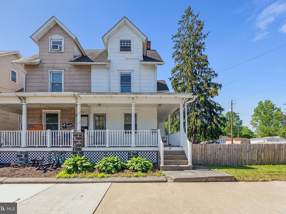 35K Price Drop! Discover this beautiful twin nestled in the enchanting heart of Quakertown Boro, boasting an expansive .34 acre lot. Be sure to checkout the 4+garage, perfect for the car enthusiast, a workshop, or additional storage! Step inside and be captivated by the first-floor living space, freshly painted to create an inviting ambiance filled with an abundance of natural light that dances upon the gleaming hardwood floors. The dining room offers an intimate setting for shared meals and memorable gatherings. Prepare to be inspired in the updated kitchen adorned with elegant subway tiles and modern stainless steel appliances, a culinary haven that combines style and functionality. A convenient powder room completes the main level, ensuring comfort and convenience for you and your guests. Venture upstairs to discover four charming bedrooms, each offering a peaceful retreat for rest and rejuvenation. These bedrooms are accompanied by a thoughtfully designed hall bath, exuding timeless elegance and functionality. For those seeking additional storage space, an attic awaits, providing the perfect solution to keep your cherished belongings close at hand. Situated in close proximity to 309, the PA Turnpike, and a myriad of shopping centers, this home offers unparalleled convenience and accessibility to the amenities you desire. With its warm and inviting atmosphere, this cozy gem is sure to capture your heart, making it an irresistible opportunity that won't be available for long. Don't miss your chance to experience the allure of this remarkable home—schedule your appointment today.