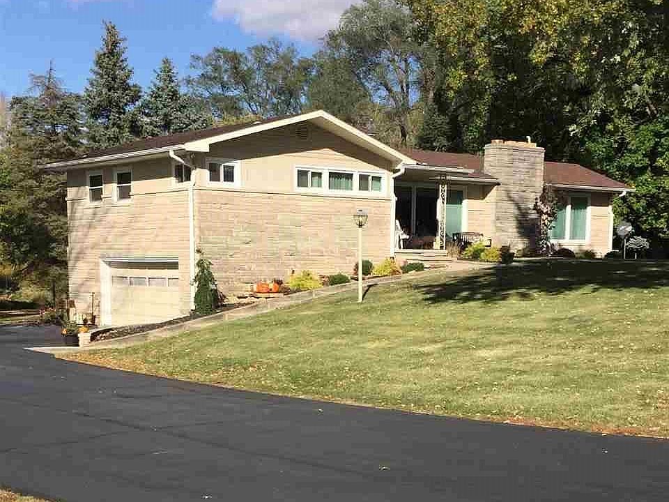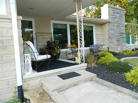 Don't miss out on the beautiful Bedford stone home, nestled on almost 4 acres! Back deck & sunroom overlook a beautifully landscaped yard with mature trees. Full walk-out basement features a spacious living rm, full bath, den (or possible 4th bedroom) and a utility/storage rm. Main level features a fully applianced eat-in kitchen, newer flooring and a master suite. Updates include newer windows, roof, water softener, A/C, landscaping and so much more!! Realtor is related.