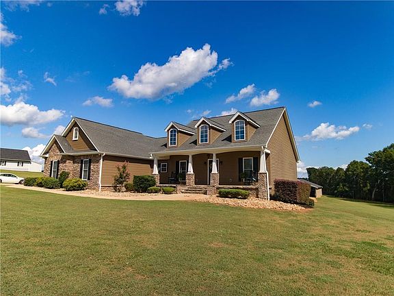 This custom-built home is situated on almost 4 acres. As you arrive you will notice the craftsman style home accented with an inviting front porch and stacked stone. The open great room has vaulted ceilings, a custom built-in, and a stacked stone fireplace as the focal point of the room. There is great attention to detail with custom cabinetry and board and batten wainscoting throughout the home. The eat-in kitchen features a large island that can be moved or turned in the opposite direction. There are 4 bedrooms and an office. The split floorplan allows privacy for the master ensuite. The spacious master has tray ceilings. The master bath is host to his and her closets 2 large vanities, and a jetted tub. The walkout half-basement has great storage space. Exterior features include a huge 40x60 polebarn, enlarged garage with extra storage and a concrete dog lot. Enjoy evenings on the screen porch overlooking the private yard. Fair Play is close to Anderson, Clemson Unversity and I-85.