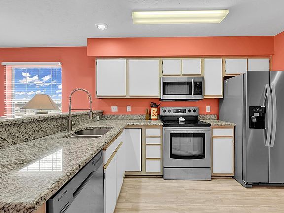 - Features: Breakfast Bar, Stainless Steel Appliances, Solid Surface Counters