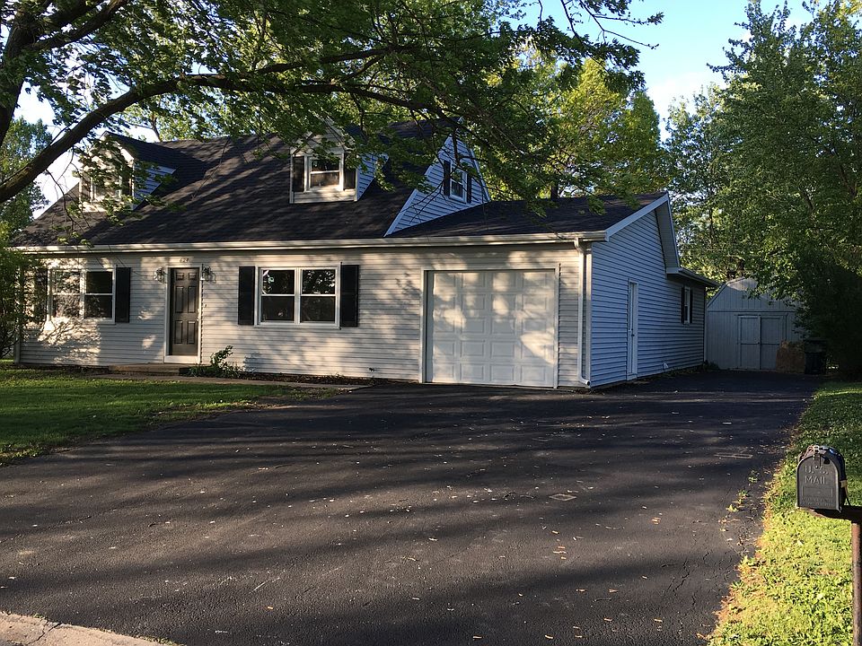 This cape cod has been completely remodeled. There are 3 bedrooms (one on the main floor), 2 bathrooms, huge family room with a fireplace, laundry room and deck that overlooks the park. Brand new kitchen and appliances, new luxury vinyl plank flooring and carpet, both bathrooms remodeled and all new drywall and paint throughout house. Roof and windows all replaced in 2017. There is also a 1 car attached garage. This summer the family will love the back yard that backs up to the park giving everyone room to run. For extra storage there is a large storage shed. If you are looking for small town living, don't miss this opportunity!