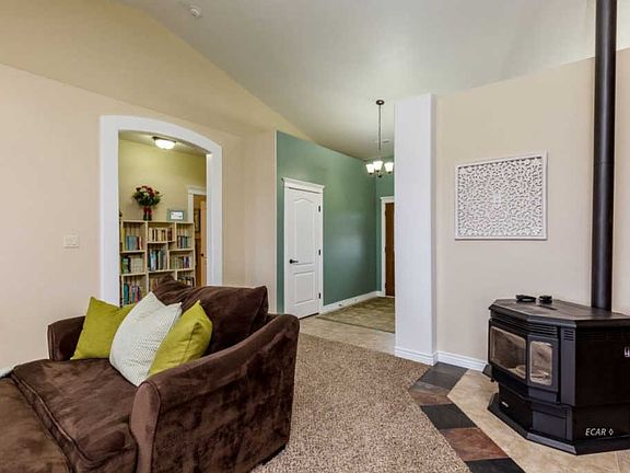 - Flooring- Carpet, Flooring- Tile, Vaulted Ceilings, Pellet Stove, Ceiling Fan(s), Smoke Detectors, Chandelier(s), Blinds, Insulated Garage