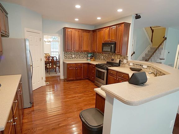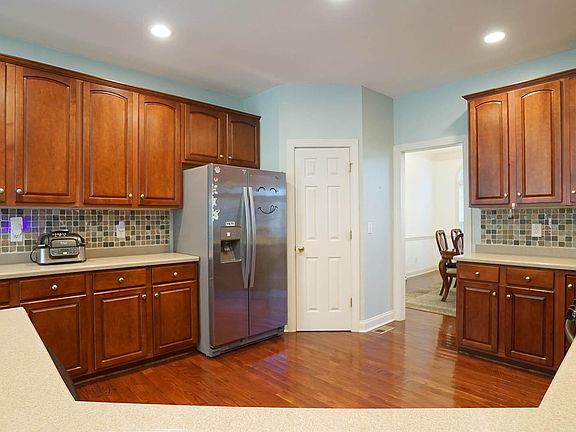 This beautifully maintained, original-owner, 5-bedroom home is located in the highly desirable Riverside subdivision, offering access to a pool and tennis community. The first-floor primary suite features a bay window, walk-in closet, and an ensuite bathroom with dual vanities, a walk-in shower, and a relaxing soaking tub.The bright, eat-in kitchen is perfect for family meals, with abundant cabinet space, newer stainless steel appliances, a tile backsplash, hardwood floors, and solid surface countertops. Adjacent to the kitchen, the spacious family room includes a cozy gas log fireplace and overlooks the private, wooded backyard.Additional main-level highlights include an oversized dining room with hardwood floors, chair rail, and crown molding, and a first-floor office featuring a stunning palladium window.Upstairs, you'll find four large bedrooms, with two sharing a convenient Jack and Jill bathroom. A bonus room and a two-car garage provide even more space and functionality.Backing onto a serene greenway and conservation area, this home offers privacy and natural views. Recent upgrades include new lighting throughout, a 2023 roof, new entry doors in 2022, a 2021 HVAC system, interior painting in 2022, and a water heater replaced in 2019.