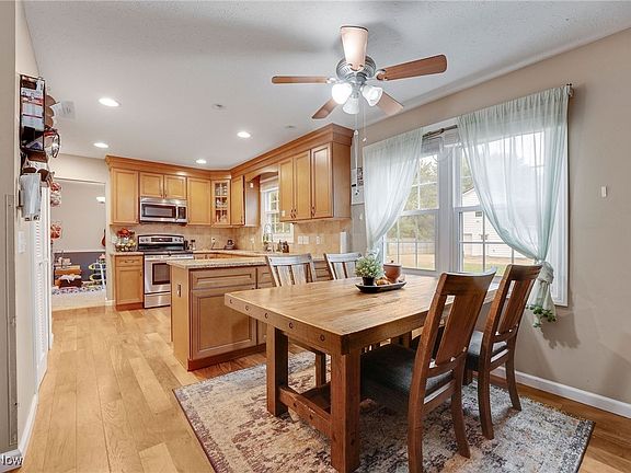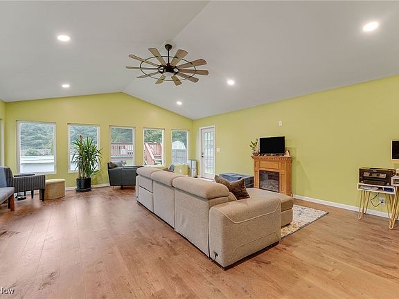 The updated kitchen stands out with stainless steel appliances, granite countertops, custom maple cabinetry, and a ceramic tile backsplash. Just off the kitchen is a welcoming dining room, perfect for gatherings. The main level offers multiple living spaces, including a cozy family room with a full-wall brick fireplace and wood-beamed ceilings, plus a large addition that expands the home’s footprint. One of the newest highlights is the beautiful sunroom—an inviting year-round space filled with natural light, giving you another place to relax or entertain.