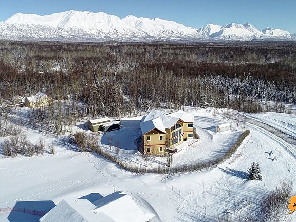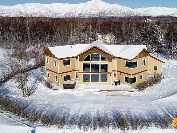 Fishhook Gem! Enjoy the amazing mountain views from this comfortable home with soaring ceilings, in-floor heat, air cond., air filtration and central vac. Relax outdoors in hot tub on the large deck or beautifully landscaped yard with garden beds, greenhouse and fruit trees. Includes 1120 SF.garage+detached heated shed. Great commute location and access to Hatcher Pass/Government Peak Ski trails!