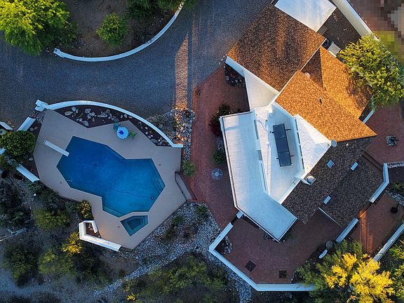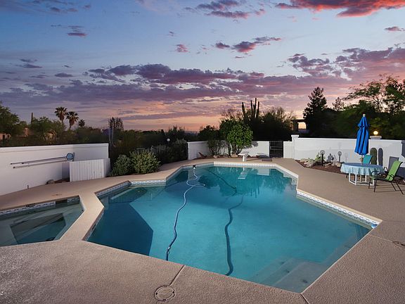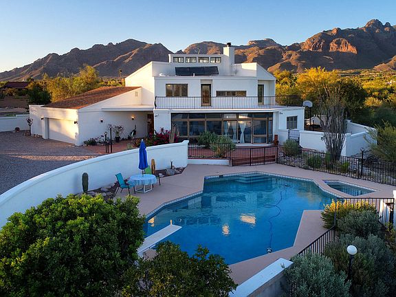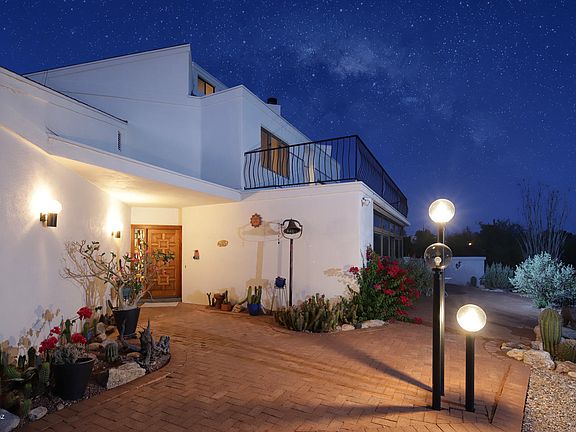 * VIEW VIDEO: https://az.movinghometour.com/22012963_Tucson%20MLS * Don't miss this one of a kind custom home w/gorgeous mountain, sunset & city light views! The unique architectural details are sure to delight w/walls of windows, wraparound balconies & interior tower w/360 degree views! Fabulous backyard features a sparkling pool, large covered patio, low care landscaping w/twin saguaros & lovely brick pavers. Inside you'll find a well-appointed kitchen w/modern cabinetry, SS appl & a comfy nook. Nice family room off kitchen & the living room has a cozy fireplace. Arizona room w/great backyard views can be an office, studio or whatever suits your needs. Master suite has an alcove & ensuite bath. One bedroom & full bedroom downstairs. Slate floors, clearstory windows for lots of natural light, solar water heater, dual cooling & no HOA!