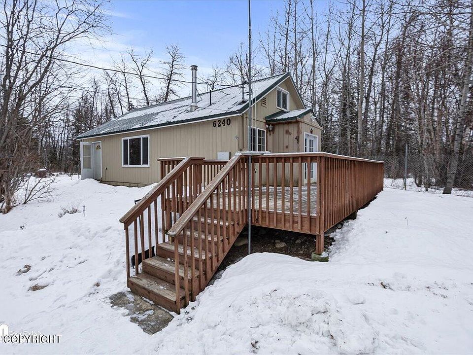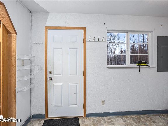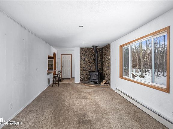 1.55-acre property located just off Palmer-Fishhook road. The residence includes one bedroom and one bathroom with a loft, a living room equipped with a wood stove, and a spacious picture window.