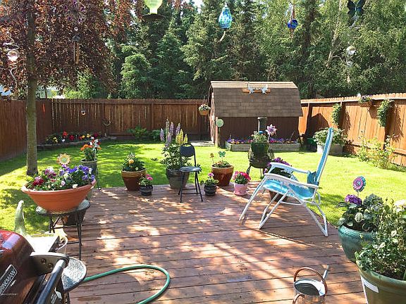 Just in time for summer to enjoy this gorgeous yard and covered deck. This town home has newer windows, roof and paint. Kitchen has been updated with newer cabinets and appliances. One of the few this style with fireplace. Nice driveway with double parking and fully fenced yard. Great evening sun to enjoy the deck and backing to greens. No Dues! Large Shed.