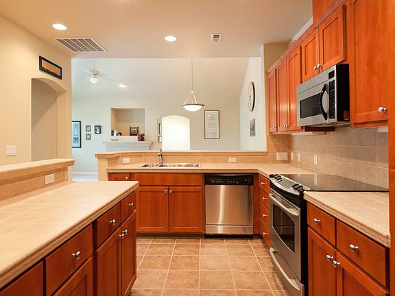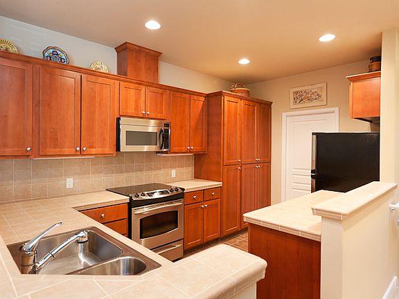 Affordable condo in gated community. open floor plan w/vaulted, skylights. Stnlss kitchen appliances, washer/dryer. Private deck at back of complex w/view of hillside. Extra deep garage w/storage. Covered deck w/access via great room and master. All appliances included!