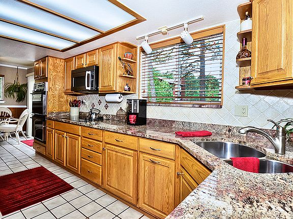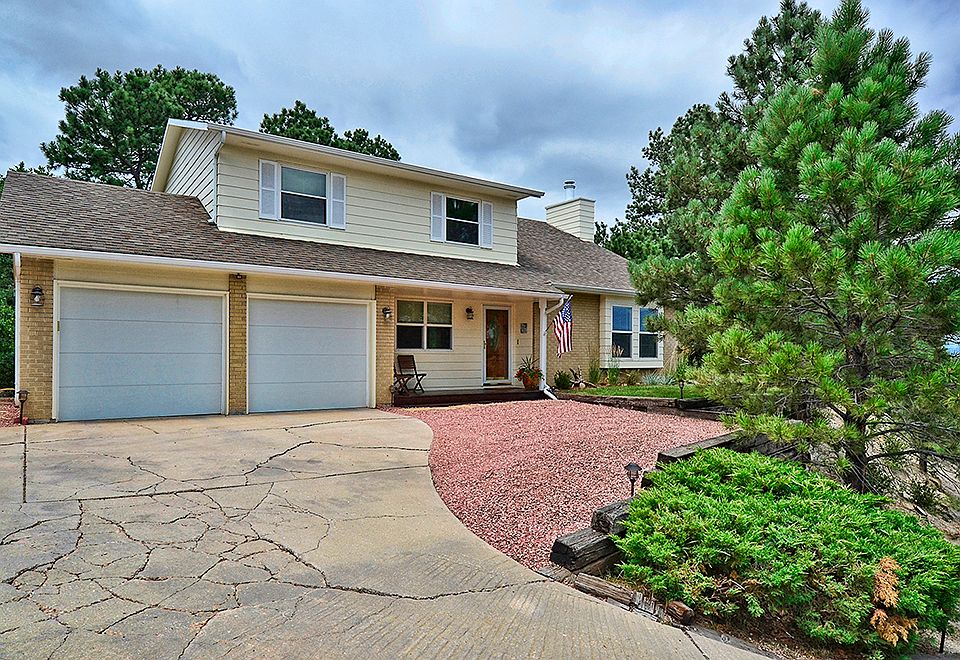 Hard to find rural setting in town. Wrap yourself in the trees and views of Colorado from the top of the world home. driveway takes you up to Birds Nest home with Mountain views to the west and city views to the east. Main level offers updated kitchen with granite countertops, formal dining room with nicely done floors, hearth room off the kitchen great for entertaining and breakfast nook with one of two access doors to the huge back deck. Upstairs offers for bedrooms with great storage. One-of-a-kind home where outdoor living makes it hard to want to go inside. Make sure to note the private hot tub on the side deck. Wrong extra parking on side of house and front of the house. Features include Central air, Vinyl windows, oversize deck, RV parking and storage shed on the side of the house