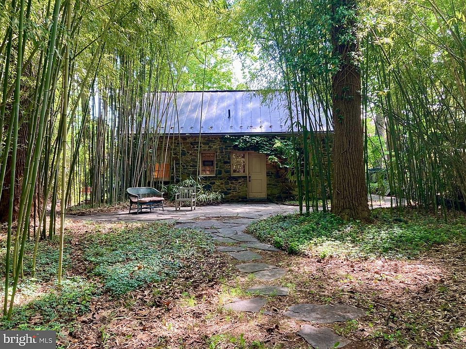 The interior of this charming stone cottage is truly special, featuring handcrafted details that are simply remarkable. Upon entering, you are greeted by hand-stenciled artistry resembling "carpets" on the original oak flooring in the foyer, dining room, and hallway. This unique touch sets a warm and welcoming tone for the home. The owner, who has an architectural background, has made this cottage one-of-a-kind with custom-made details including doors, windows, antique latches, and meticulous attention to detail. A highlight of the cottage is the elegant stone wood-burning fireplace, complemented by smooth, seamless ceilings and walls that showcase the careful restoration of this nearly 80-year-old home. With two cozy bedrooms and a beautifully finished bathroom, every element of the cottage reflects thoughtful craftsmanship. The features are designed with longevity in mind; for instance, the Terne Tin roof can last a lifetime. The open attic, equipped with a wood-burning stove, provides versatility and can serve as an artist’s studio, additional bedrooms, or offices. The lower level retains the original stone walls, with handcrafted elements concealing updated mechanical systems, and custom features that enhance the home’s unique character. In the backyard, trained bamboo has been creatively used to create “sitting rooms,” complemented by patios and landscaping made of hand-cut stones from a local quarry, laid in ground stone dust and slate from the original roof. This is not an ordinary home; it is meant to be admired by those who appreciate the handmade details throughout. For more information, please call.