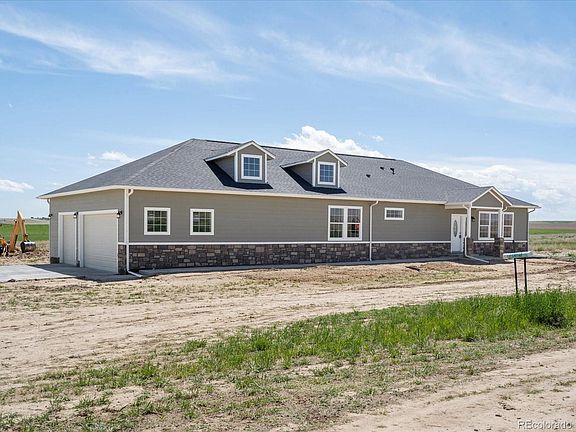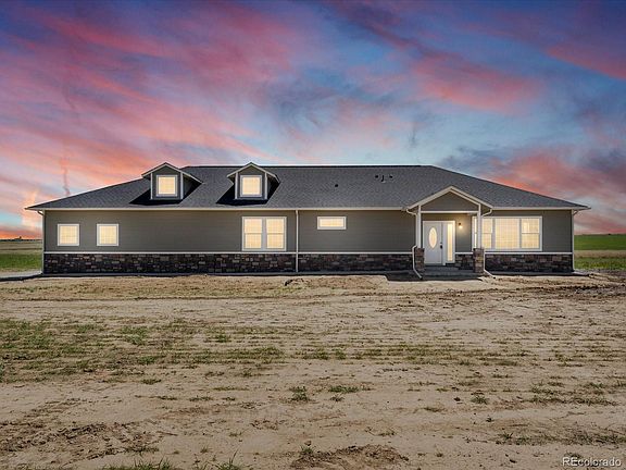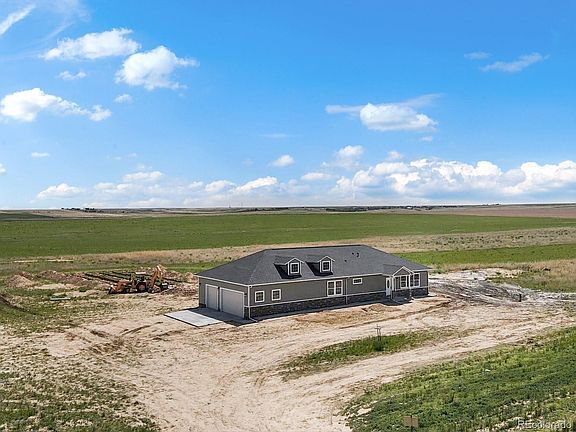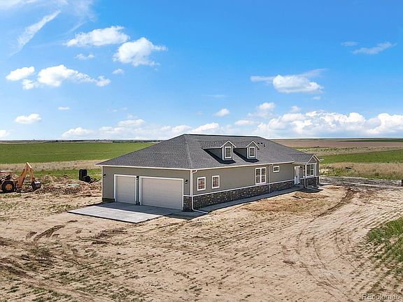Boasting meticulous craftsmanship and exquisite attention to detail, welcome to luxury rural living with this stunning NEW CONSTRUCTION home located in Strasburg CO on 36 ACRES. Convenient location - only 10 mins from I-70, 40 mins to Denver and 25 mins from DIA. Upon entering, you are greeted by an inviting entryway that flows seamlessly throughout the open-concept layout. The spacious living area features a beautiful drop ceiling, a sleek and cozy fireplace and the room is lined with windows, allowing natural light to flood the space, creating a bright and airy atmosphere. The gourmet kitchen is a chef's dream, showcasing top-of-the-line stainless steel appliances, custom cabinetry, and a generous center island. Expanding into the dining area is an oversized countertop allowing bar seating to easily spread out when entertaining. Retreat to the luxurious primary bedroom, complete with a spa-like ensuite bath featuring dual vanities, a soaking tub, and a walk-in shower and expansive walk in closet. Three additional well-appointed bedrooms offer ample space for family or guests. Step outside to your private backyard oasis on 35 acres. Bring your toys, animals, and your vision for rural living.