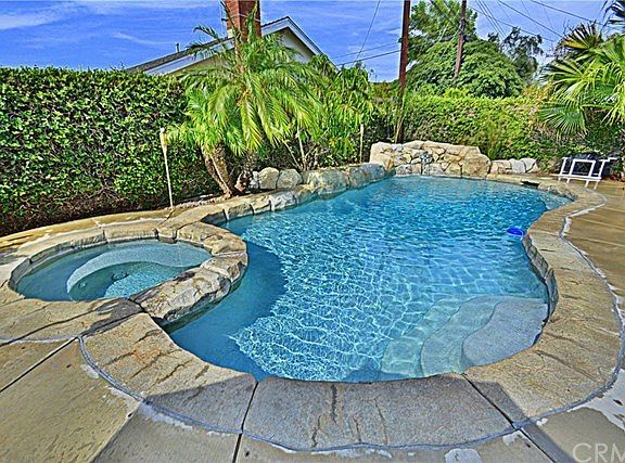 Backyard Paradise! Single Story Dutch Haven home with an Exquisite Pool on a quiet cornet lot! The Custom Resort-Style pool features a Rock Waterfall, plus an attached Spa. New Features Throughout, including New Paint, Remodeled bathrooms with New fixtures, New Tile Showers, and New Vanities, New Central Furnace & New Ducting, New Fireplace, New Tile Hearth, and Wood Mantel, New Dual Pane Windows, & Insulation. The light and bright floor plan is perfect for entertaining, and features Four bedroom & 2 bath. Spacious kitchen with Corian counters, Glass Mosaic Tile Backsplash, Pergo flooring & New appliances. Fantastic neighborhood, in walking distance to highly desirable schools of Hope View Elementary & Mesa View Junior High. Conveniently close just minutes to Huntington Beach Central Park, Sports Complex, Dog Park & Equestrian center. Enjoy the Ocean air breezes, living less than 5 miles to the beach! The impressive backyard also features a grass area and Inviting Patio on the side of house offering nice place to relax. Don't miss out on this Rare Opportunity.