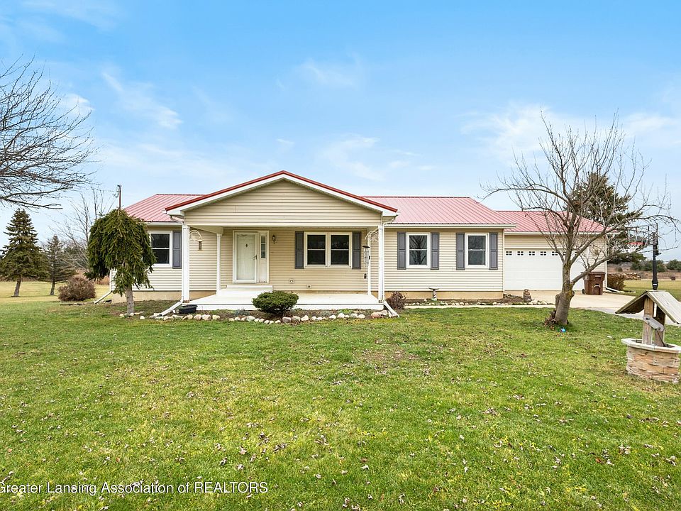 Escape to your own private retreat with this stunning property nestled on just over 4 acres in the peaceful countryside of St. Johns, Michigan. This beautifully maintained home offers a serene lifestyle with scenic views in every direction. Once inside you'll find a spacious 3-bedroom, 3-bathroom open layout designed for comfort and functionality. Recent updates include a newly installed furnace and durable vinyl plank flooring, ensuring modern efficiency and style. The walkout finished basement provides additional living space, ample storage space, and a layout that's perfect for expanding your vision of home. Outside, you'll discover an additional outbuilding ideal for storing all your toys, tools, or hobbies. The property's private and secluded setting offers a perfect escape from the hustle and bustle, whether you're relaxing on the back porch or looking to start your own garden(s), orchard, or other land-required activities. For the pet lovers there is even a fenced in dog run perfect for all your furbaby needs. If you're looking for a peaceful country home with modern amenities and room to roam, this property is a must-see. Schedule your private tour today and experience the tranquility for yourself! Newer recent updates include water heater and pressure tank in 2021 and new windows in 2023.