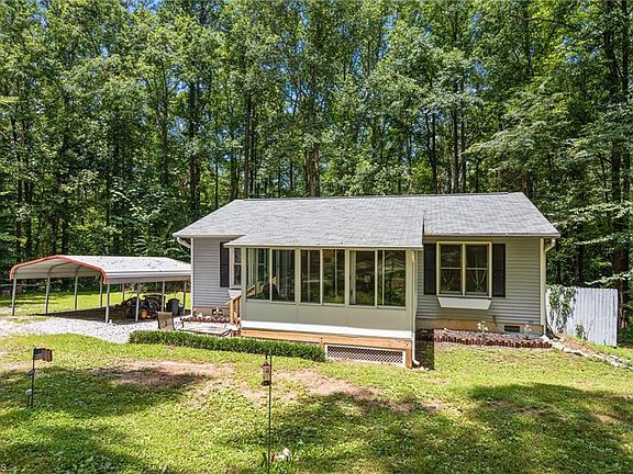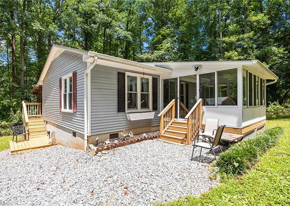 Surrounded by nature with a feeling of total privacy, this charming cottage in the woods which is just about 20 mins to dwntwn Winston Salem and under 30 minutes to GSO meets modern convenience in Walkertown! This beautifully updated 2-bedroom, 1.5-bath home sits on a picturesque wooded property with thoughtful upgrades throughout. Step into and relax in the light-filled 12x14 permitted sunroom (not included in square footage) and take in all the peaceful surroundings! Entering the home, recent 2024 improvements include: new water lines, new toilet, water pressure tank, water heater, HVAC system, duct cleaning—with an air scrubber and whole-house water filter for added peace of mind. The septic was pumped and inspected in December, 2023. Enjoy the ease of an open concept and the convenience of all appliances staying including the refrigerator, washer, dryer, and two mowers! No HOA! Please inquire about a 100% financing option with our preferred lender.