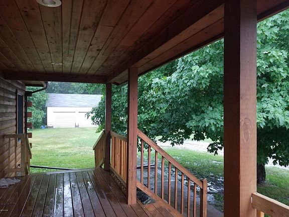 Tranquility awaits you with this charming log cabin on almost 9 acres. Listen to the trickle of water from the nearby creek, from the deck that spans two sides providing opportunity to entertain with either shelter or exposure. Wrap yourself with the warmth of wood throughout inside, with an open floor plan and a loft overlooking the living and dining area. Master suit on second level has a private full bathroom. Main level bedroom could also be used as a master suit with having a walkthrough closet to a full bathroom. The basement offers a nice sized family room with a covered patio right out side the door...So many possibilities to enjoy! Please call to arrange a private viewing!
