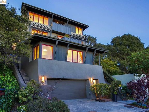 This Contemporary Mark Becker Craftsman is situated with nearly every room looking out at SF/Bay views, and lush greenery. Hand-plastered walls meld seamlessly into rich wood detailing, defining the spaces and flaunting fine craftsmanship. The open floor plan combines main floor living/dining rooms with an expansive chef's kitchen on a mezzanine above, and cozy den. A front balcony spans the width of the house--perfect for entertaining and savoring sunsets. Three ample bedrooms and two full baths include the master retreat, with fireplace and walk-out balcony. A professional home office sits on the street level, with a separate entrance, waiting area and half-bathroom. An enviable man cave, yoga studio, or music room would also work well here. The second floor is home to a private guest suite, with one bedroom, a full bathroom, kitchenette, living room and views, with a cozy patio/entry. From within the 2-car garage, you'll be happy to note the elevator which connect the levels.