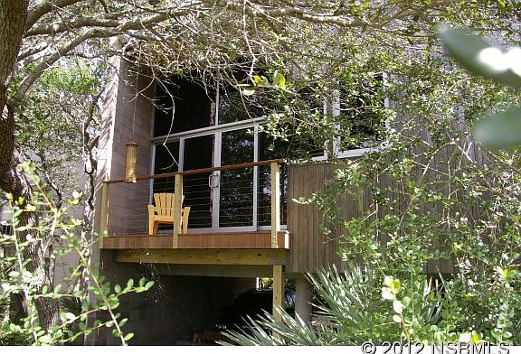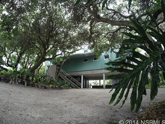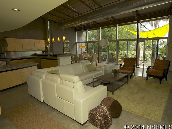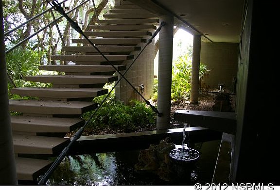 Renowned Architect's personal modern home from the late firm Schweizer/Waldroff. This 3BR/2.5BA waterfront beachside contemporary loft style open floorplan is nothing short of a masterpiece. In the spirit of Frank Lloyd Wright, this showplace is merged with nature. To enter the property, you drive through a tunnel of trees and are immediately greeted by a work of art. Words cannot do this home justice. Features include exposed architectural block walls, concrete columns and steel turnbuckles, a 100 gal koi pond w/ fountain, commercial grade floor-to-ceiling windows, 14'ceilings with loft space, concrete floors and countertops, vessel-top sinks, open steel bar joists with pine wood ceilings, fireplace, nautical shell formed showers with chicklet tiles and garden spa tub with frameless glass with view of the treetops, barn-style rolling doors, flat-screen wall-mounted tv's in every room, SS appliances with commercial kitchen gas range, 580SF 1st floor bonus space, NEW poured concrete entry stairs 2015, NEW 16 SEER AC 2015, 2012 new roof and 2014 new exterior paint,over 1300 sf of exotic Ipe wood decks and a dock with boat davits, providing small boat access to some of the best fishing in the world. Short walk to NO DRIVE beach! Say 'NO' to the typical builder home and 'YES' to this one-of-a-kind. Schedule your private viewing quickly as homes like this are ultra rare. ALL FURNISHINGS ARE NEGOTIABLE AND MAY BE INCLUDED IN PURCHASE PRICE. ALL MEASUREMENTS ARE APPROXIMATE.