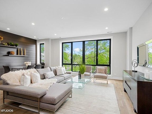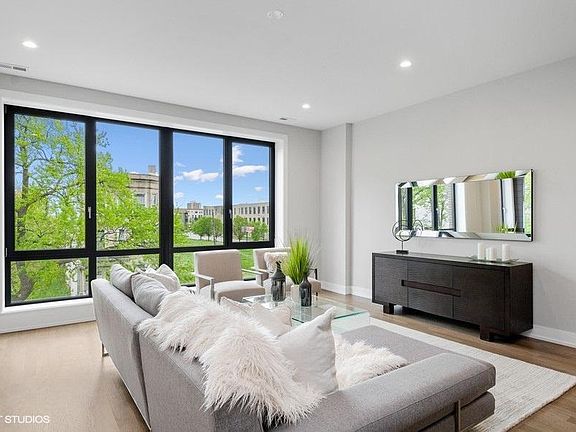 Brand new construction three bedroom, two bathroom condo in prime Hyde Park location. Offers beautiful new hardwood floors throughout and a spacious open concept layout. The living and dining area feature large windows filling the space with natural light, recessed lighting, and chic lighting fixtures. Contemporary kitchen with custom cabinetry, brand new stainless steel appliances, and large eat-in island. The master suite has hardwood floors, a walk-in-closet with custom organizers, slider doors to the private deck, and a gorgeous ensuite bath with a glass enclosed rain shower and dual sink vanity. The second and third bedrooms both feature hardwood floors and ample closet space. Second bathroom with soaking stub and sleek finishes. Laundry closet with side by side washer and dryer. One exterior parking space included. Excellent Hyde Park location near U of C, parks, the lakefront, shops, restaurants, and the CTA and Metra!