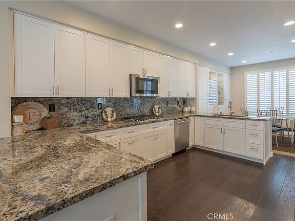 Absolutely Stunning in every way! This Del Sol end unit with a three Car Garage offers life at the Beach at its Finest!! You are immediately greeted by a Wrap around Patio, fabulous for those warm and lovely summer evenings. The Living Room features a Romantic Fireplace, Gorgeous Hardwood Floors, an Elegant Formal Dining Room that overlooks the Living Room and Spacious Patio. Exit to the Balcony for a Breathtaking Ocean View! The remodeled Kitchen is a Gourmet Delight! Some of the Appliances include: Five Burner Gas Stove, Soft Closing Doors and Drawers, Jenn-Air Oven (one is convection), Dishwasher, Microwave, Stainless Steel Sink, Gorgeous Granite Countertops, Under Counter Lighting and an "Island" on Wheels...No expense was spared! Built in China Cabinet and an "Eat In" Kitchen; Perfect for Entertaining!! Spacious Family Room with Balcony and flows perfectly towards the kitchen. The Tranquil and Serene Primary Suite offers a Walk-in-Closet, High Ceilings, Plantation Shutters and a Romantic Fireplace. The recently Designer Bath has a separate Shower, Double sinks, and a Marvelous Soaking Tub.. A Spa like Resort Style Living! A Hall Bathroom separates the primary Suite from the other two bedrooms with their High Ceilings and Ceiling Fans. Out the Front Door past the Community Pool and Spa, go through the Security Gates, take a left and within five minutes you're at the Pacific Ocean and Surf City USA!! This is an Entertainer's Delight, Resort Style Living at its Fines!! This Designer's GEM awaits you!!