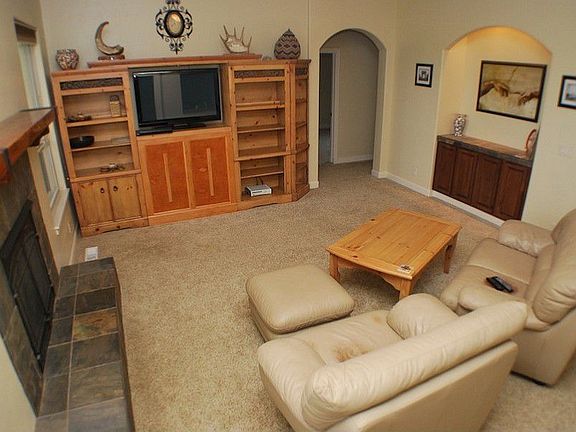 Wonderful single level home on about an acre, split bedroom design; many upgrades throughout, such as wood flooring, tile flooring, gorgeous cabinets, and more. Entering into the family room with a tiled fire place you flow to the kitchen and dining space. The kitchen is set for entertaining and lavish meal preparation, tons of cabinet space and counter top space. The master suite has tile flooring in the bath room, huge soaker tub and fireplace. Well landscaped, full sprinklers, 3 car garage.