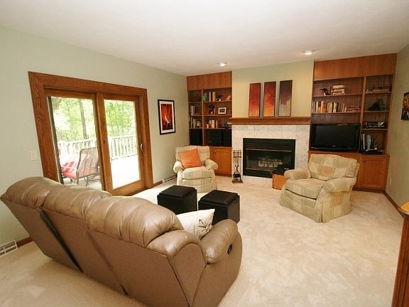 Elegant 5 bedroom Transitional home on a 1.3 acre wooded lot. Eat-in kitchen includes Quartz counters, breakfast bar & stainless steel appliances. Formal Living room, dining room, 1st floor family room & 4-Season sunroom with deck access. Upper level has 4 bedrooms, including large master bed with walk-in closet & private bath. Lower level has Rec room with wet bar, bonus room, full bath & 5th bedrrom/office. Private wooded backyard has shed, firepit & beautiful plantings.