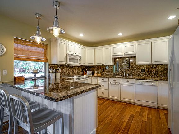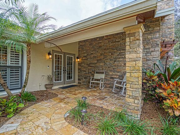 Private tropical oasis on lushly landscaped half acre lot, the home features 3 bedrooms, 2 baths, 2 car garage concrete block single-family pool home located in the highly desirable community of Whispering Trails! Renovated and updated Single story home with Great open floor plan with vaulted ceilings and a fireplace. Bright light kitchen with white wooden cabinets, granite counters tops & backsplash & beautiful wood flooring. This beautiful home features French doors, plantation shutters throughout, wood flooring, outdoor pergola sitting area. A separate Living Room can be converted into an office or another room. Both baths have been remodeled to include double vanity with granite countertops and all new tile shower / tub with saturnia marble and/or /frameless shower, newer fixtures