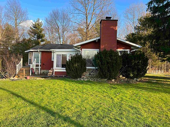 Your piece of paradise on TEN acres just North of Potato Creek State Park and minutes from South Bend. This home is ready for your touch to make it yours. This unique 3 bedroom, 2.5 bath home features a sucken living room with a view! Imagine sitting next to your beautiful stone fireplace looking over the rolling pastures in your own back yard. The home also features three four season rooms with so much potential! The laundry area is also conveniently located on the same level as the bedrooms. Outside you have two massive pole buildings. One can easily store 4 cars and the other features horse stalls and a massive riding area in back! Schedule your showing before this one is gone!