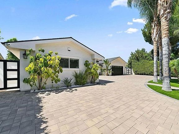 Experience luxury living in this custom-built, single-story home nestled behind private gates. Featuring a circular driveway and RV parking, this property combines convenience and style. Step inside to an expansive open floor plan with soaring ceilings and a spacious, chef-inspired kitchen equipped with a large center island, stainless steel appliances, and a seamless flow into the dining and living areas, perfect for both everyday living and entertaining. The oversized primary suite offers a walk-in closet and a spa-like bathroom complete with a soaking tub, steam shower, and sliding glass doors that open directly to the serene backyard oasis. Down the hall, you'll find three additional generously sized bedrooms. Outdoors, enjoy true California indoor-outdoor living with a stunning saltwater pool, spa, and built-in BBQ area, ideal for hosting or relaxing. The low-maintenance yard features artificial turf and a drip irrigation system for the privacy trees. This smart home is fully equipped with the latest tech - new security cameras, alarm system, Ring doorbell, AquaLink pool/spa control, built-in surround sound, whole-home speakers with volume control, and a new washer and dryer. Centrally located near top-rated schools, parks, shopping, dining, and easy access to both freeways and local canyons, this custom home truly has it all, in one of the area's most desirable neighborhoods. *This property is available furnished for an additional fee.* Available short-term or furnished - Please Inquire
