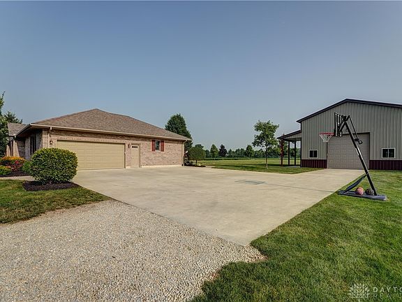 Discover the epitome of luxurious living nestled on a sprawling 2.519 acre estate, boasting an impeccably designed 5-bedroom, 3.5-bath home that spans over 3,215 square feet of elegant living space. Surrounded by lush landscaping, the property welcomes you with enchanting paver walkways leading to a covered front entrance and extends an invitation to explore the vastness of its outdoor allure, highlighted by a massive composite Trex deck perfect for entertaining or serene solitude. Step inside to an expansive great room, where a cathedral ceiling adorned with recessed lighting enhances the grandeur of the space, complemented by a gourmet kitchen outfitted with a stainless-steel appliance package, French door refrigerator, double oven range, and dishwasher, a charming breakfast bar. The split floor plan ensures privacy and comfort, with the owner's suite offering a retreat-like ambiance featuring a spacious bedroom, walk-in closet, double vanity, soaking tub with shower. Main level also houses three additional bedrooms, equipped with closets and organizers, alongside a guest bath and a conveniently located laundry room and half bath. The finished basement unveils a realm of possibilities, featuring a full kitchen, family room, bedroom with egress window, large office, and a full bath accessible from both the bedroom and living area. Advanced geothermal heating/AC, an Ecobee smart thermostat, ensures year-round comfort. The property also includes a 2-car attached garage with a utility sink and 220 amp for a generator, a 30 X 40 barn and a serene paver fire pit area for unforgettable evenings under the stars. This extraordinary home blends sophistication with functionality, making it a rare gem. Swing set is excluded from the sale. All information is gathered from the seller and the Darke County Auditor website. Information is believed to be accurate, but is not guaranteed or warranted. Room sizes are estimated. Verify all information.