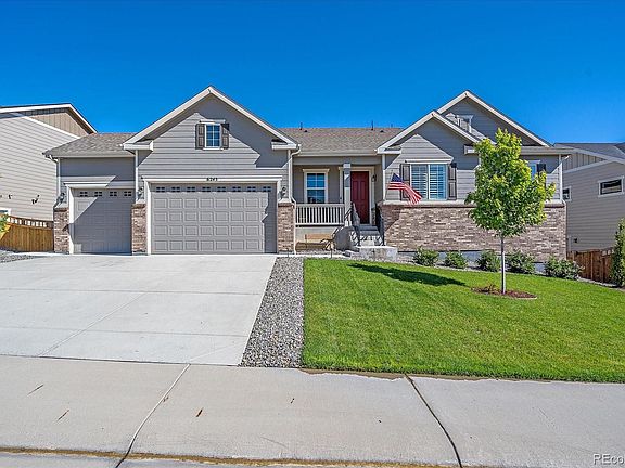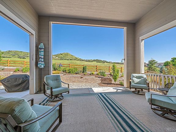Absolutely stunning ranch with open Melody floor plan, high ceilings and backing to expansive open space. The gourmet kitchen features a large center island/breakfast bar, granite counters, 42" cabinets with soft close doors, ss GE appliances including 5 burner gas cooktop, double oven with convection and wi fi connect, deep sink, walk in pantry, and pendant lighting. The entire back of the house is glass and features a vaulted great room that is so spacious and is highlighted by a gas fireplace and a wall of glass door that opens letting the outside in. The master is situated for privacy and features a luxurious bath with split sinks, tile floor, oversized frameless shower with bench seat and walk in closet. The two secondary bedrooms are both a great size and have a hall bath with corian countertop and double sinks. There is also a 1/2 bath on the main floor. The entire main floor is luxury plank flooring and is highlighted with shutters. The garden level basement is incredible featuring high ceilings, large family room with wet bar and full sized frig, two spacious bedrooms and 3/4 bath. There is a large storage room and also has a radon mitigation system and sump pump. The 4 car garage is finished and features epoxy floor, storage racks and cabinets. Cable and internet are wired throughout the house. The front features a front porch and out back there are two very large patios one covered and a gas hookup for a grill. You will love the xeriscaped yard with tons of flowers with drip system and b-hyve controller. The yard is fully fenced . The open space creates great privacy and sitting on the covered patio is the perfect place to relax and view the wildlife and listen to the birds. The neighborhood has a pool, playground and lots of trails for walking and biking. Close to both Parker and Castle Rock for restaurants and shopping. You will fall in love with this home.