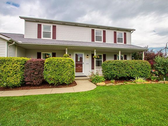 Beautiful hilltop mini farm on 8.99 acres. The 2 story home overlooks the picturesque pastures and woods with panoramic views throughout the home. A beautiful entry welcomes you with dark stained 3/4" maple hardwood floors that carry throughout most of the home. The main floor features a formal dining room with chair rail molding, spacious kitchen with dinette seating with access to the deck. Adjacent is the family room with wood burning fireplace and a formal living room. Off of the kitchen is the first floor laundry and a full bathroom. Upstairs features 4 comfortable bedrooms with another full bath and owner's retreat with walk in closet, jacuzzi tub and shower. The entire home has been freshly painted for the new owners. Outside is the original barn featuring 5 stalls with water and electric available and second red barn built in 2015 has a large hay loft with water and electric. The land has been thoughtfully laid out and separated into 10 different gated paddocks over approximately 7 acres, perfect for rotational grazing. There is even a 8x15 chicken coop with water and electric. For horse lovers, the property connects to the tri county trails. Additional updates include; all new windows and patio door in 2016, new light fixtures, 80 gal Hot water tank, well re-drilled to 527 ft with constant pressure variable drive pump, Carrier heat pump furnace& A/C 2014, 2,700 thousand watt Grid connected windmill with 200 amp service. This is one you don't want to miss!
