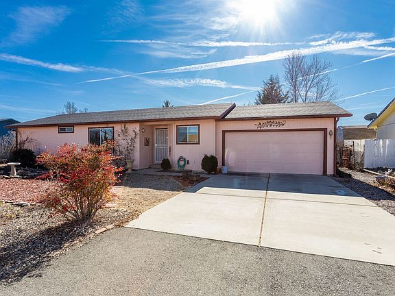 This single level, cute, clean & updated home boasts excellent curb appeal and a wonderful location that is close to all Prescott Valley has to offer. The light, bright open interior offers vaulted ceilings, extensive built in bookcases, entertainment cabinets, wood window sills, decorative pot/plant shelving & ceiling fans. Very efficient kitchen features updated cabinetry doors, solid surface countertops, updated dishwasher, dual vessel sink & dual pane windows. Natural gas is available to the range and all appliances including the refrigerator, washer & dryer convey.