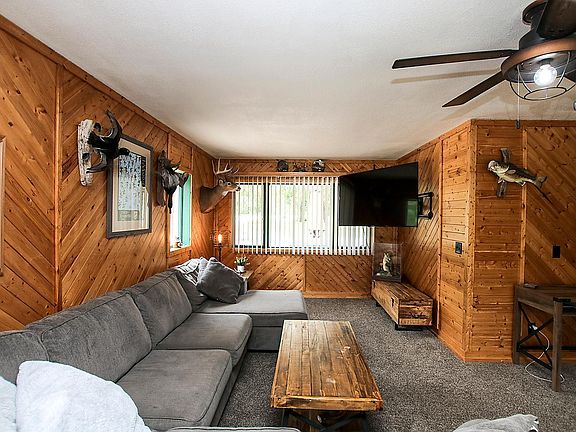 Private treed setting with creek flowing through is where this 3 bedroom rambler is located. Many recent updates throughout home. Primary bedroom with 3/4 bath, and a full main bath with double sinks. Maintenace free log siding and steel roof. Oversized double garage is insulated & heated. 30x40 heated shop with storage lean too's on each side. Enjoy the two patios that overlook this 1.88 acre property with an abundance of wildlife. This home is move in condition!