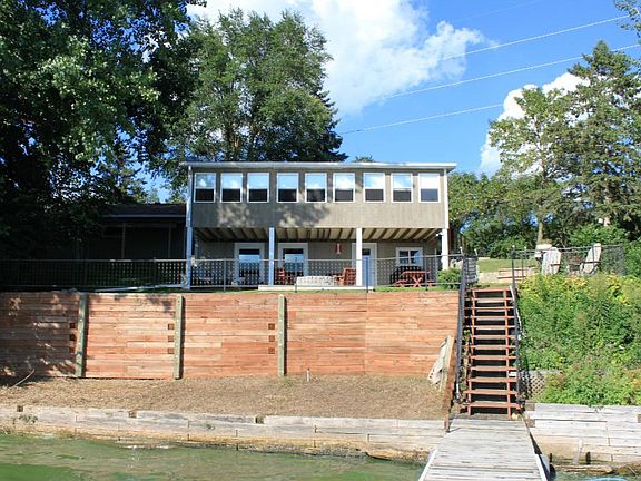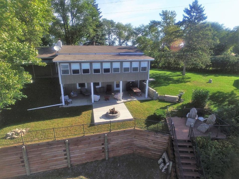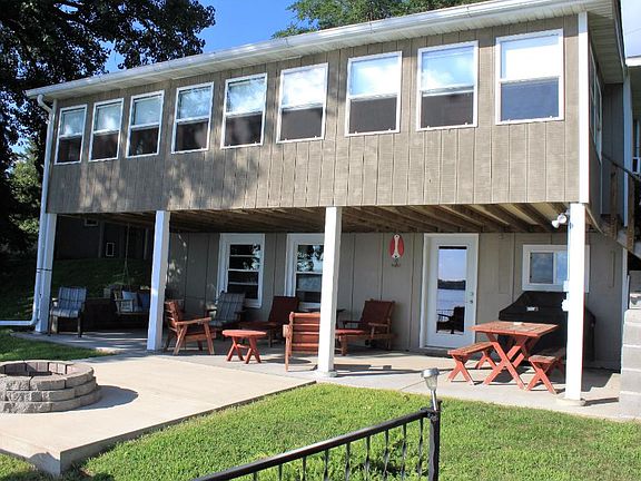 200' of Lake Byllesby shoreline. Master bedroom Kitchen, dining area, living room on main level. Walk out basement . Newer concrete patio and fire ring off walkout. Stone fire place in family room. 12x30 3 season porch overlooking lakefront. 2 Car garage. New roof 2008, windows 2013, spray foam insulation 2013, lower patio & retaining wall 2014, furnace in lower level 2015