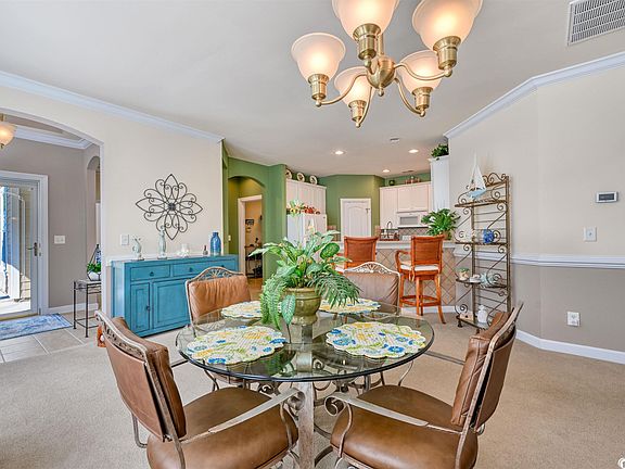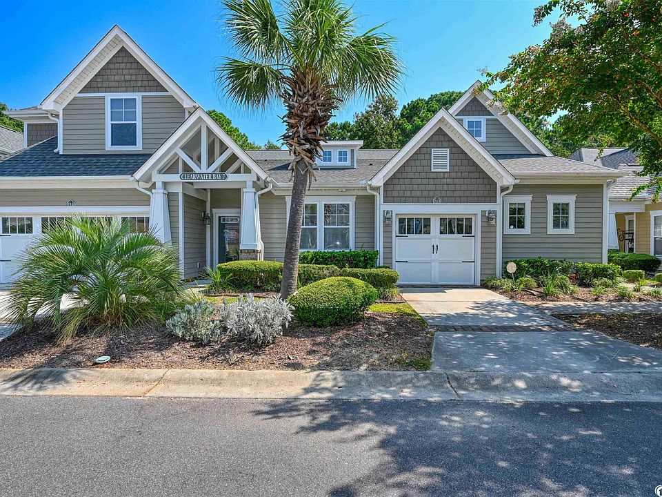 This well-maintained 2-bedroom, 2-bath unit in Clearwater Bay offers a convenient single-floor living layout, making it unique within the community. It's designed for maintenance-free living, with the HOA taking care of all exterior upkeep. Recent updates include a new roof, and the homeowner has upgraded the HVAC and water heater. Being an end unit, it feels more like a single-family home, with windows on three sides that flood the space with natural light. The interior has a neutral yet coastal vibe, making it move-in ready. The kitchen boasts plenty of cabinets, a spacious pantry, and solid surface countertops. All kitchen appliances and the washer and dryer are included. A half wall with an arched opening separates the living room and dining area. The master bedroom features a walk-in closet and a second closet for extra storage, along with a master bath that includes double bowl sinks, a separate shower, and a garden tub. The second bedroom is located at the opposite end of the unit and has access to its own full bath. The unit backs to a serene wooded area and a golf course, providing a peaceful view from the rear screened-in porch. Residents of Clearwater Bay can enjoy a private clubhouse with various activities and a resort-style zero-entry pool. If you're in the mood for the beach, you can head down to the new multimillion-dollar Oceanfront Cabana with private parking, or stay within the neighborhood to enjoy one of the four championship golf courses.
