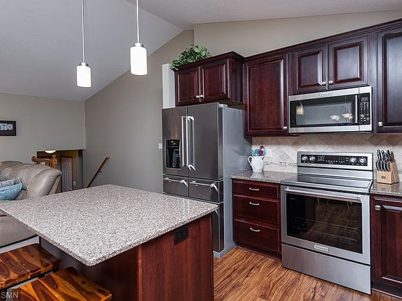 Absolutely stunning home in move-in condition. Ideally located with access to the park! Open and inviting this home has a beautiful kitchen with quartz tops, tiled backsplash, new cabinetry, stainless steel appliances and hardwood floors. Master bedroom with private master bath, tiled floors and a large walk-in closet. Main floor full bath, tiled floors and bedroom with walk-in closet. Outstanding lower level is perfect for entertaining. Freshly painted, all new carpeting, full bath with tiled floors and 2 additional spacious bedrooms. Dynamite location, close to parks, trails, schools, restaurants and shopping!
