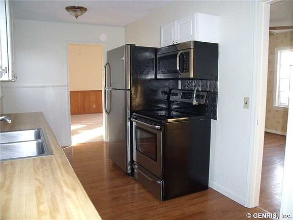 Cozy three bedroom, 2 bath home with refinished hardwood floors, new vinyl and carpeting. Freshly painted with brand new stainless appliances. New roof (complete tear off)two weeks old. Newer furnace (95% efficient). Corner cupboards in dining room. 1st floor full bath updated.