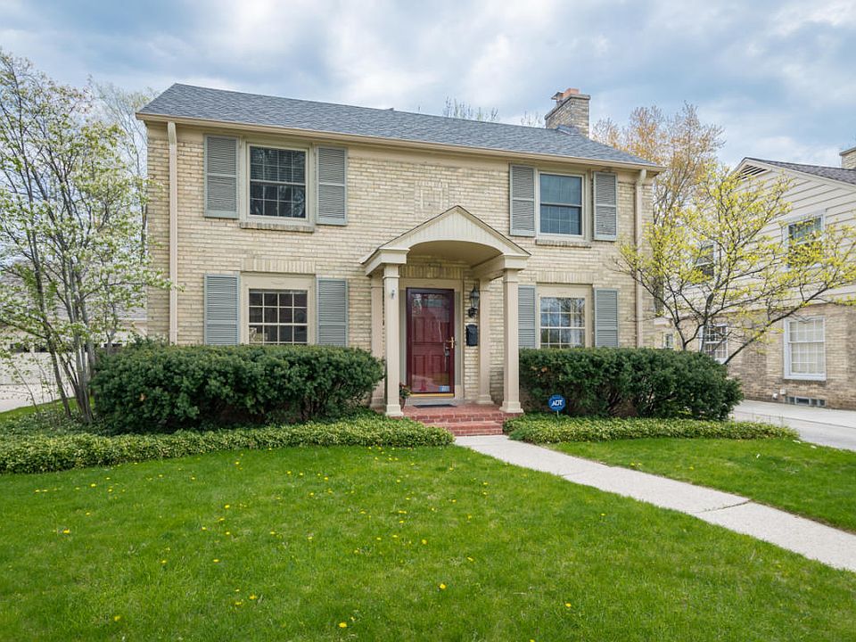 Beautiful brick center entrance colonial offers all the charm and character you'd expect plus a few pleasant surprises. Features HWD floors and crown molding. Enjoy a sun-filled LR with NFP. Awesome open KT with granite counters, lots of cabinets, and casual eating area. Rare large FR off the kitchen with another FP is ideal for entertaining. Flow naturally to the backyard garden and patio. Bright and happy BR upstairs with an updated BA. Plus a newer roof and windows throughout. Partially finished lower level makes for a great play space.