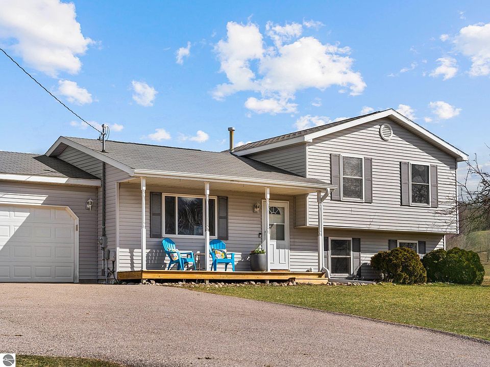Charming 3-bedroom, 2-bathroom QUAD level home on 2 country acres perched up high with magnificent countryside views. Inside, discover a cozy interior complemented by recent updates and a functional layout. The main floor features a welcoming ambiance with fresh paint throughout with lots of natural light offering a bright and airy atmosphere. Entertain guests effortlessly in the dining area, conveniently adjacent to a deck where you can enjoy outdoor dining or simply unwind amid the tranquility of nature. Ideally located just 6 miles from downtown Traverse City. This home is also located close to schools and shopping. The perfect blend of rural tranquility and urban accessibility.