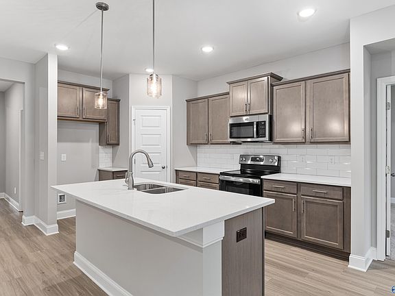 Move in Ready!!The Everett Plan exudes elegance with its expansive single-story layout spanning over 2100 square feet. This ranch-style residence boasts 4 spacious bedrooms and 3 luxurious bathrooms, including a separate garden tub and shower for added refinement. The interior is adorned with luxury vinyl floors that add a both beauty and longevity, complemented by high 9-foot ceilings throughout that highlight the feel of spaciousness in every room. The kitchen features granite countertops, enhancing both functionality and elegance highlighting the time tested open concept. Situated on a large lot backing up to serene wooded areas, find this hidden gem in the Spragins Cove Community.