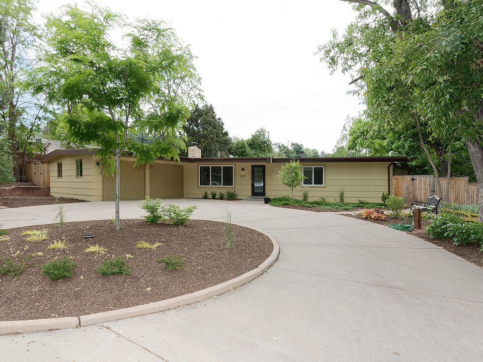 Unique opportunity to own a light-filled Mid Century Modern home in Old Littleton. This charming house includes beautiful hardwood floors, new interior paint and carpet, new windows, as well as an updated kitchen with new stainless appliances, and updated bathroom finishes. Two of the three bedrooms have en suite bathrooms. Enjoy summer cookouts on the magnificent patio overlooking your large private yard (over 20,000 sq. ft lot) filled with mature trees, irrigated perennial and garden beds. And, if you are looking for a private office, you have found it in the detached HE SHED! You will love walking one block to the library, park, and Littleton Historical Museum and Farm. Only 1 mile to light rail and Historic Downtown Littleton. 1 year home warranty provided by Seller. This is a must see!