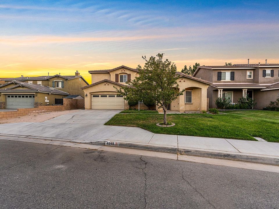 Stunning 5 bedroom home in West Lancaster. As you enter the home you will walk through the formal living and dining room. The kitchen is welcoming with an oversized center island with lots of cabinetry,built in desk, granite counter tops, stainless steel appliances and a large pantry. The great room has a gas fireplace with lots of natural light coming through the windows. The downstairs bedroom is large and has a full bathroom. Providing great accommodations for company. Master bedroom is grand in size and the master bath has a separate shower and Jacuzzi tub with a massive walk in closet. Laundry room is upstairs for convenience. Upstairs bathroom is a full bath and the other bedrooms are oversized and have walk closets . This beautiful home has window coverings throughout and upgraded light fixtures and ceiling fans . The backyard features a large patio cover, planter, dog run and side RV access. . The 3 car tandem garage offers additional parking and storage with side door access to the RV area. This is a great place to call home.