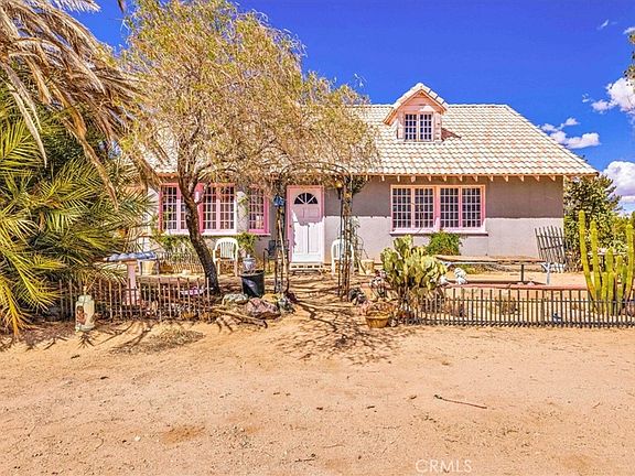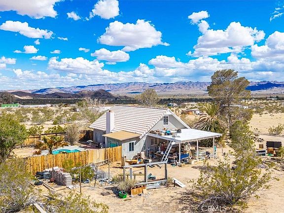 Discover this enchanting 1-bedroom, 1-bathroom pool home in sought-after north central Joshua Tree. Nestled on over an acre of land, this property exudes character with its gabled windows, tile roof, and mature landscaping. Perfect for a creative touch, this home has all the potential to become your dream desert getaway. Step inside to find a cozy living room featuring a stunning stone fireplace, cool wood-beamed ceilings, and large banks of windows that fill the space with light and offer serene desert views. The kitchen is well-equipped with stainless steel appliances and abundant wooden cabinetry, leading to a spacious raised dining room perfect for gatherings. The bedroom is generously sized, and the bathroom boasts a large, remodeled walk-in shower. An indoor laundry room adds convenience to this charming home. The outdoor space is a true oasis. The backyard features a sparkling in-ground pool surrounded by a concrete and brick patio, mature landscaping, and wooden privacy fencing, creating an ideal setting for relaxation or entertaining under the desert sky. Located just minutes from downtown Joshua Tree and the iconic Joshua Tree National Park, this home is an incredible opportunity to embrace the desert lifestyle. With some updates, it could become the ultimate retreat or investment property. Schedule your tour to see this special find for yourself!