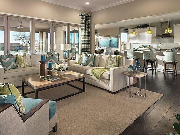 Wonderful Tesoro floorplan on Great mountain view lot! Some beautiful features added are: Expanded covered Patio, w/4 ft. Garage Extension. Expanded Master Closet & curbless walk-in shower. Shaker Cream Maple w/ semi-overlay cabinets w/42'' uppers, Full Height Tile backsplash, Blanco Granite Biscotti Undermount Sink, Delta Stainless Pull-Down faucet, GE Profile Stainless Appliances include Gas Cooktop, Built-In Oven, Microwave & Dishwasher. Quartz Kitchen & Bath countertops. Baths include Delta Stainless Plumbing Fixtures & Acc., Two-tone interior paint, Soft Water Loop, sink in Laundry rm plus full laundry cabinets. 5 1/4'' base boards. Light taupe Wood-Look Tile with light tan upgrd carpet. To top it off you have a Gas Stub for a BBQ, Rain Gutters and Landscape.