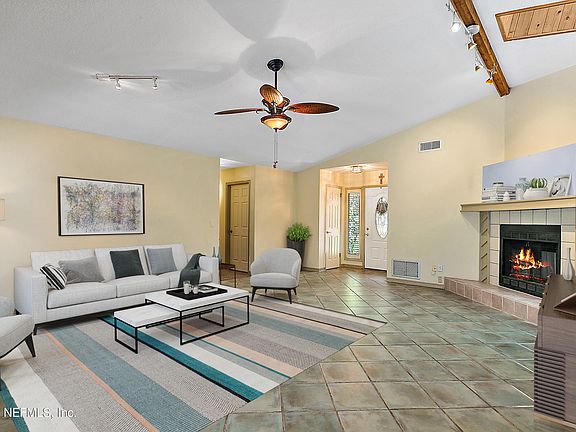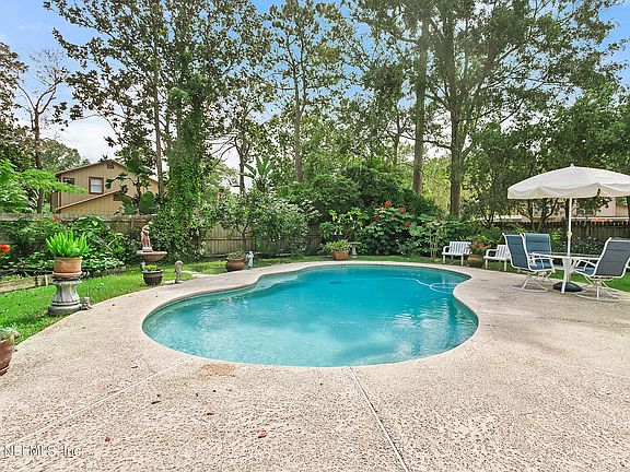 Bask in the outdoor Florida lifestyle with a refreshing Inground Pool encircled by your own little corner of paradise. As you step into this delightful Island Forest home, you are met w/ Tile Flooring in all areas except the Carpeted Bedrooms. Kitchen serves up Silestone Countertops w/Backsplash, Stainless, Gas Stove, Reverse Osmosis Filtration & Wine Chiller. Adjoining Office/Flex Room leads out to the sparkling Pool. Family Room w/Vaulted Ceiling, Fireplace & Plantation Shutters opens into a Screened Sun Room that frames a picturesque view of the Pool & vibrant Backyard. Primary Suite has Raised Vanity & Walk-In Closets. New Roof (2021), HVAC (2017), Water Softener (2020) Fenced Backyard, Equipment Shed, Water Fountain & Raised Garden Beds. Sellers Disclosure & Survey under Document Tab. Tab.