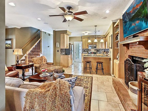 This home is beautiful, inside and out! As you drive up, you can see the Pride of Ownership. Upon entering the foyer, you'll notice the large formal dining room. The kitchen is a true chefs delight with granite square countertop, stainless appliances, distressed hickory cabinetry, slate tile backsplash, and loads of countertop space. The large dining room features crown molding, beautiful chandelier, and double windows. The open floor plan allows for easy entertaining with the kitchen opening up into the spacious Great Room featuring a gas log fireplace, built in bookshelf. The large master bedroom features more beautiful tile flooring, a breathtaking wall feature and offers a roomy master bath. This master bath has been totally remodeled with an extra-large tumbled stone tile shower, dual sink vanity with granite countertop and more slate tiling behind the custom framed mirrors. More distressed hickory cabinetry, linen cabinet, and 2 walk in closets finish off this master retreat. Upstairs you will find a small den area that could serve as a sitting room or even a small gaming area. A play room (that could be a 4th bedroom) leads you into a quaint guest bedroom with a large walk in closet. Opposite this play room is another generous sized guest bedroom also with walk in closet. A full bath with dual sinks and separate shower/tub area completes the upstairs. Outside you will find a brick privacy fence enclosing this charming backyard complete with an in-ground sprinkler system, storage shed, and deck area and with beautiful landscaping! The home features all new Low E windows and new exterior doors for energy efficiency. Schedule an appointment with your Realtor to see it today!