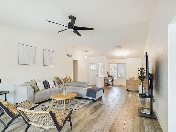 This stunning single-story home in Scottsdale offers an array of modern upgrades and a functional living space perfect for any lifestyle. Newly renovated, the property features three bedrooms and two bathrooms, along with both formal living and dining areas, and a cozy family room. The heart of the home is the beautifully designed kitchen equipped with white shaker cabinetry, quartz countertops, stainless steel appliances, and breakfast bar seating ideal for both cooking and socializing. The master suite is a true retreat, complete with a walk-in closet and a spa-like ensuite that includes a dual vanity, soaking tub, and a large custom tile shower. Additional amenities include new patio roofing, paint, wood plank tile, carpet, and fixtures throughout. The home's exterior is just as inviting with a covered paver patio, artificial turf, a refreshing pool, and ample space for entertainment. Practical features such as a two-car garage and an RV gate enhance its appeal, making it a truly desirable residence.