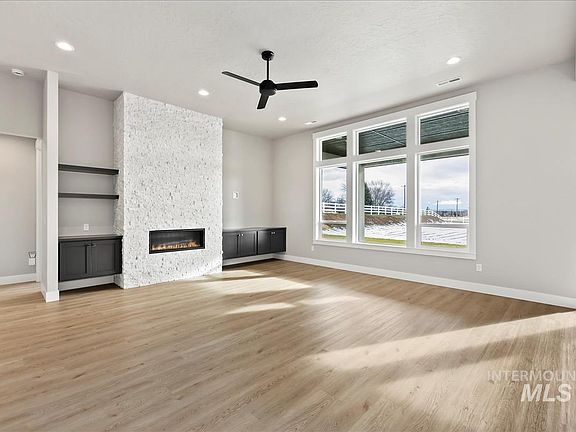 This "Addison" model is a popular floor plan by B&B Custom Homes. This beautiful home features 11' ceilings in the great room, floor to ceiling stone linear fireplace, and an open split floor plan that makes this home feel massive with a large RV garage, designer lighting, custom carpentry, soft close cabinets, black exterior windows, and quartz countertops. You'll love all the luxurious extras! The spa-like master suite with dual vanities, walk-in European shower, and beautiful covered patio are wonderful places to relax & unwind. This lot features 1 acre of irrigation rights with pressurized irrigation available. The home has its own private well & septic system, and 3 rail white vinyl surrounds this expansive property. CC&Rs allow for an outbuilding, shop, pool, etc!! Endless possibilities with country living close to town and services! The community has a two-acre common area with a pond and views! Come see Weatherby Estates for yourself! Inquire on Permanent Rate buydown program.